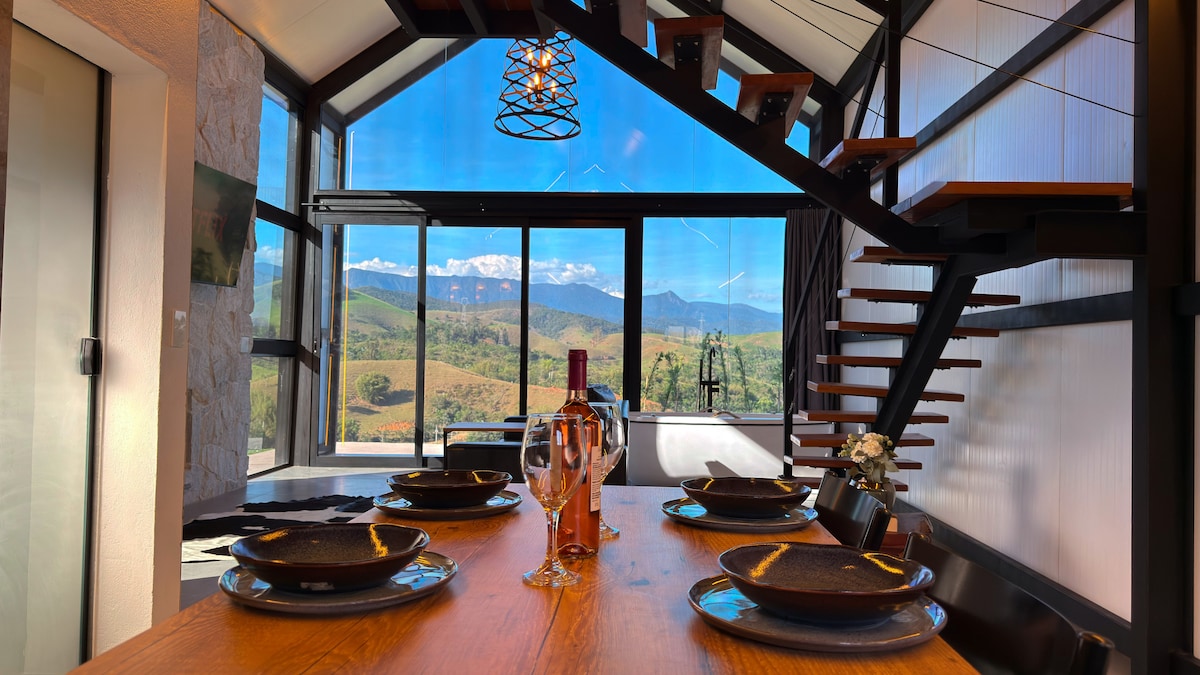O @tuffi.residences fica localizado a apenas 9 minutos do portal da cidade, com vista e som da cachoeira Sete Quedas e bem próximo aos restaurantes e Cervejaria 3 Orelhas. O chalé é bem equipado: Wifi via satélite - Starlink, piscina (não aquecida), banheira de imersão, churrasqueira, lareira suspensa, fogo de chão externo, ar-condicionado frio e quente, televisão giratória, roupas de cama e banhos, louças, secador de cabelo, microondas, geladeira pequena, cooktop, máquina de café e cápsulas.