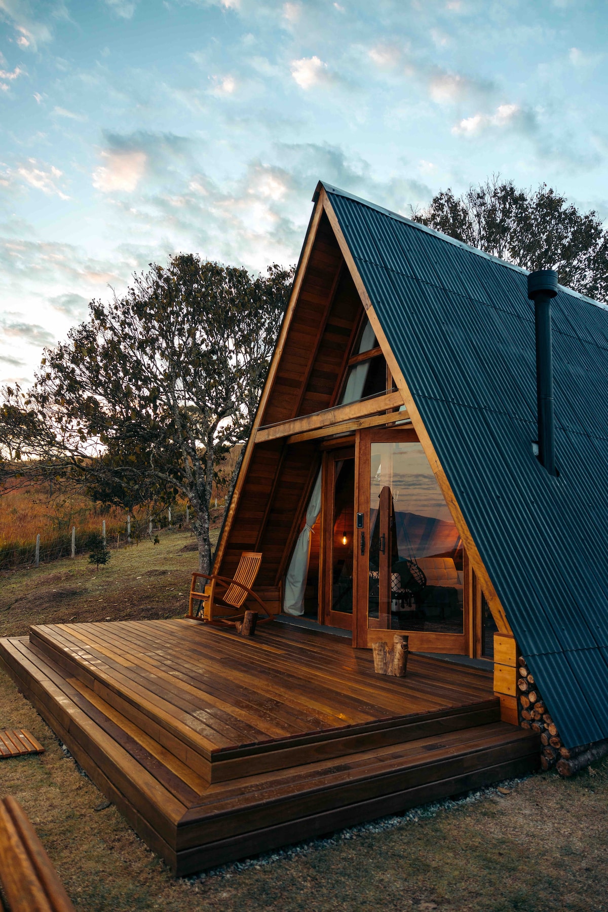 Você jamais esquecerá dessa experiência exclusiva e exótica neste destino rústico de madeira no alto das montanhas. Chalet encantador. Que tal relaxar no spa ofurô com hidromassagem apreciando champagne, ou nas redes ou bancos tomando vinho com maravilhosa vista do pôr do sol. 200m² de área construída: 90m² área interna e 110m² de 2 decks Andar inferior: ampla sala, cozinha americana, 2 banheiros e amplo deck com ofurô. Andar superior: sleep room, deck superior, rede horizontal. @montjacui