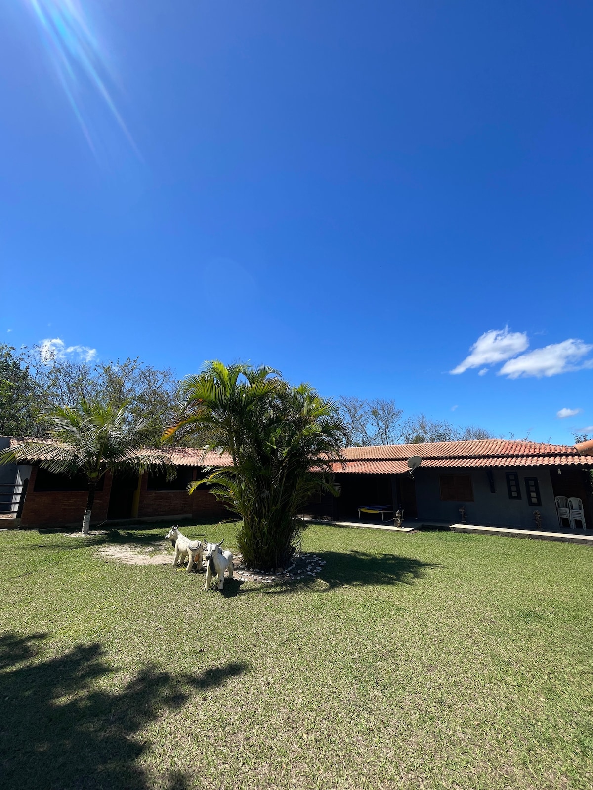 Apenas 70km de Goiânia. Ambiente ideal para famílias, casais ou amigos(as) que amam a Natureza mas não abre mão do conforto. Aprecie seu café da manhã na beira do lago, faça trilha, conheça os dois ribeirões que cerca o sítio. Tome um banho de piscina enquanto, observa o por sol. Descanse nas redes, acenda uma fogueira, divirta se na pesca livre nos riachos. Obs. Necessário identificar as pessoas que virão com você. LAGO SOMENTE PESQUE E SOLTE PROIBIDO CONSUMO.Área monitorda24h.