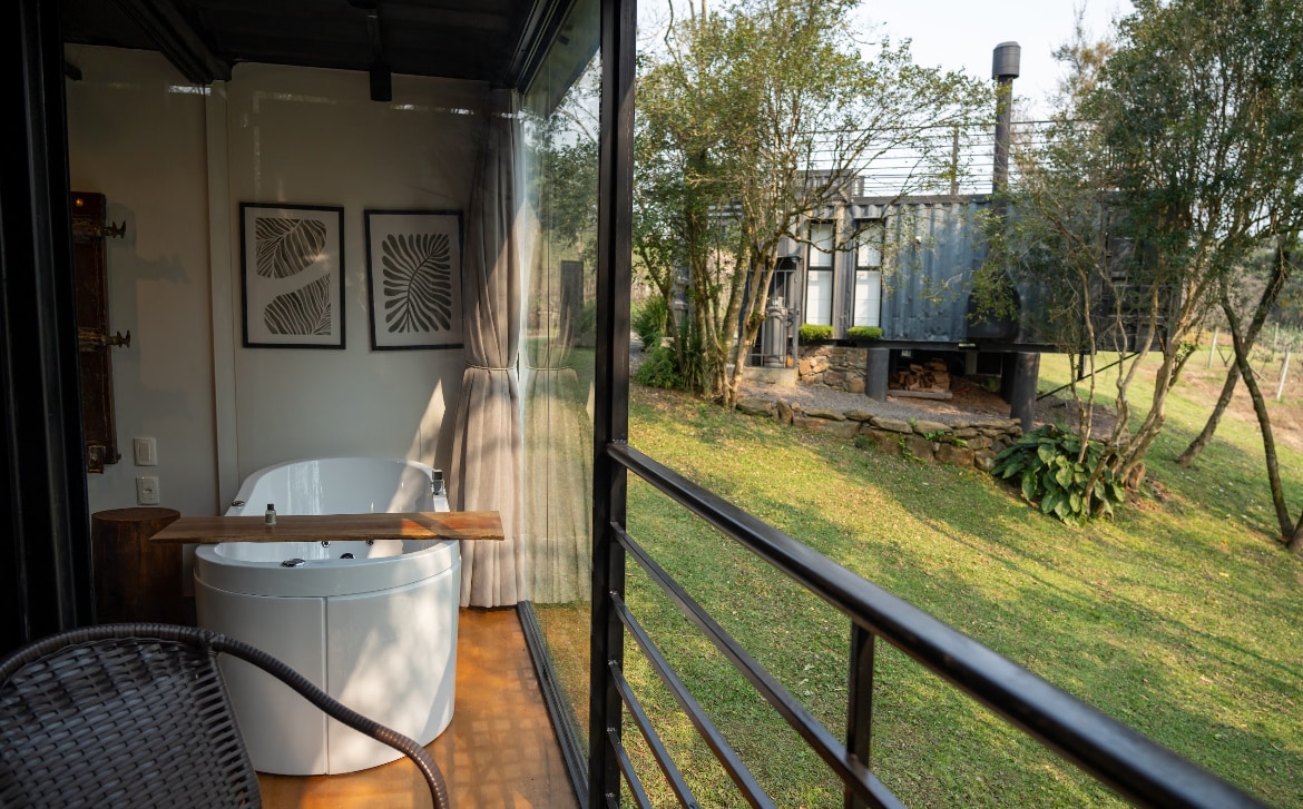 带按摩浴缸的集装箱,景色优美。