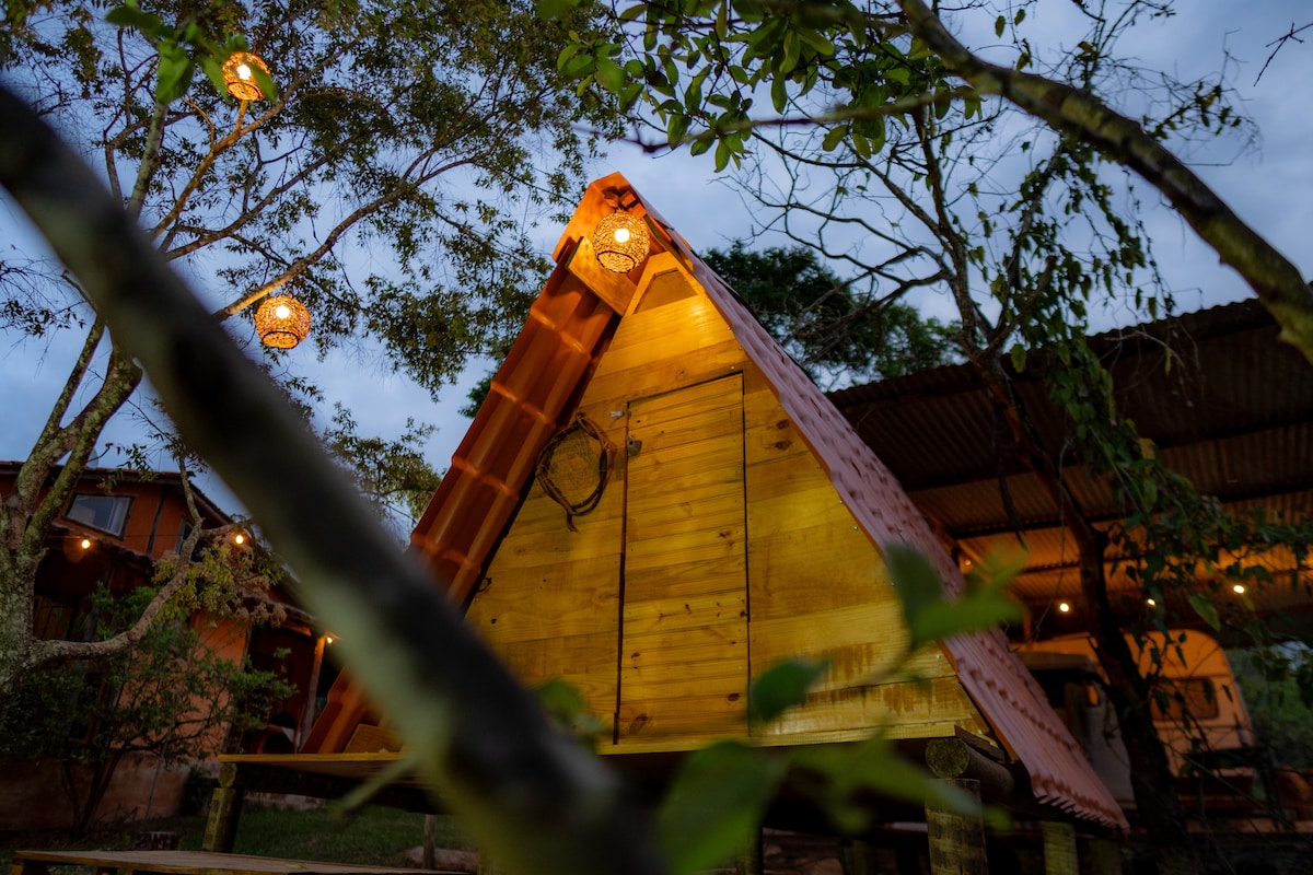 Desconecte-se de tudo ao ficar sob as estrelas. Perfeito para casais que buscam uma escapada aconchegante e viver uma aventura, o Mini Chalé Suíço com 5m2 combina charme e privacidade em um espaço compacto e acolhedor. Com design em estilo A-frame, esse chalé oferece uma cama de casal confortável, decoração rústica e um ambiente encantador em meio à natureza da pousada. Ideal para momentos inesquecíveis a dois, é a escolha certa para quem deseja uma experiência única em um cenário natural.