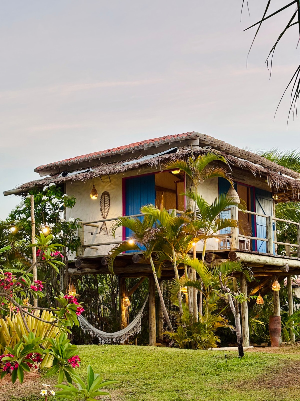 Cabana estilo TreeHouse, vista panorâmica, cercado por natureza é o diferencial desta exclusiva cabana! Com uma varanda acima da linha das arvores voce tera uma vista paradisíaca do oceano, mata nativa, canal cristalina e um vilarejo simpático de pescadores. Não a acesso a carros no morro, tornando se um lugar perfeito para amantes da natureza, aventureiros e quem ama praticar trilhas e esportes aquáticos. Localizado 15 minutos a pé da praia, estacionamentos, restaurantes e transporte público.