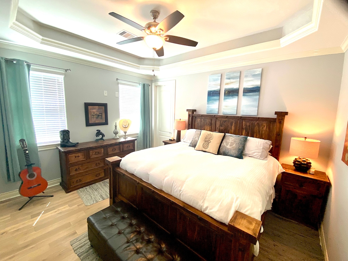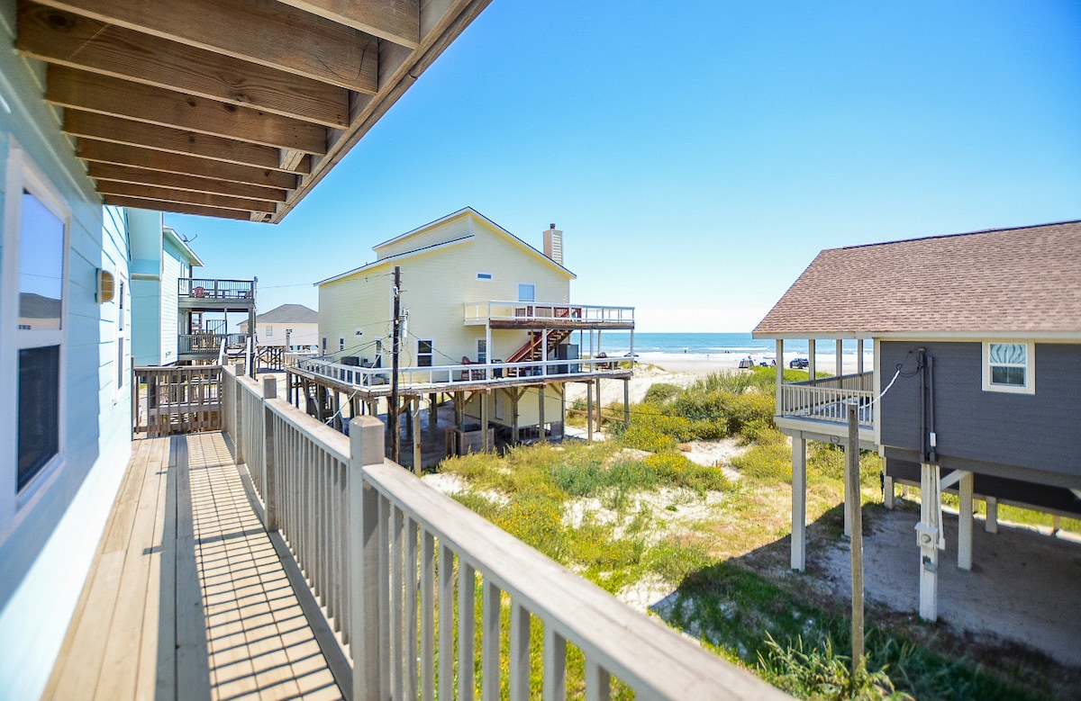 With 3 bedrooms and 2.5 bathrooms, this cozy beach house can comfortably sleep 10 guests with 5 Queen size beds throughout 1,200 square feet making it an ideal lodging choice for families, friends, or a group of couples out for a memorable seaside escape. This house sits high on beams, allowing you to see the ocean or bay views. This property is located within easy walking distance of the beach, just a few steps from the water, steps away from the crabbing pier and Stahlman Park.