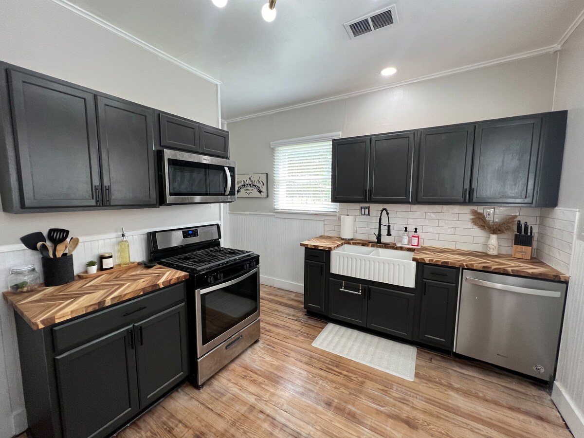 1955 Cottage under the historic League City oaks. This 1227 square foot home provides a great central location and nature enthusiasts. Guests can easily explore 3 local parks, coffee shops, and restaurants on foot, offering a convenient and authentic neighborhood experience. The backyard is a versatile outdoor space allowing guests to relax in the jacuzzi, gather for an evening by the fire, or let children play safely in a fully fenced area. Completely remodeled kitchen stocked to entertain.