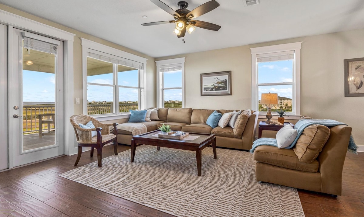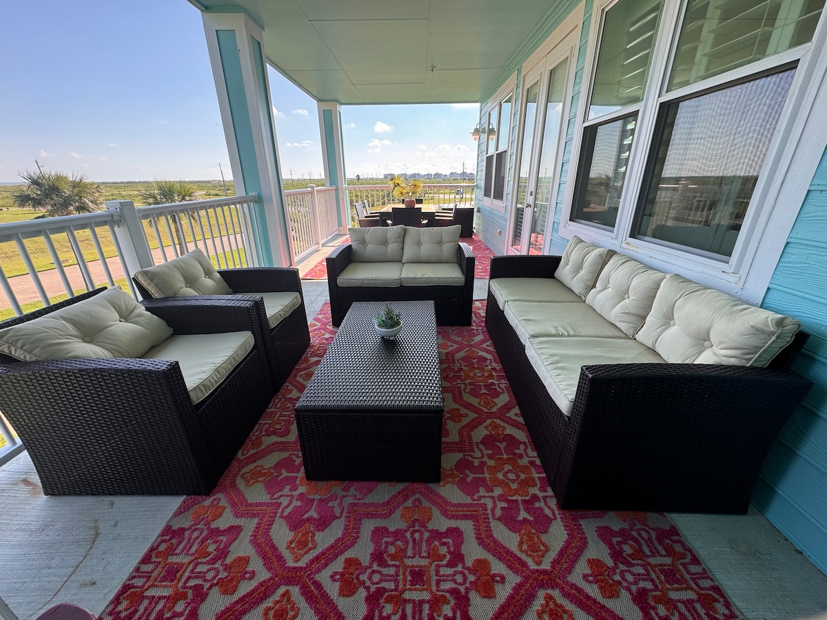 The best Ocean View at Pointe West Resort. 5 Star 3rd floor condo with spectacular views of the ocean and bay. Short walk to a private beach. Fully equipped, 2 private balconies overlooking the Gulf of Mexico and Galveston Bay. TV in each room. 70 inch TV/BD player in family room. Enjoy the common amenities such as large infinity pool, hot tub and children’s pool, Sunset Pool, Lazy River, Fitness Center, Game Room. Pointe West is bicycle and jogging friendly, and perfect for golf carts too.