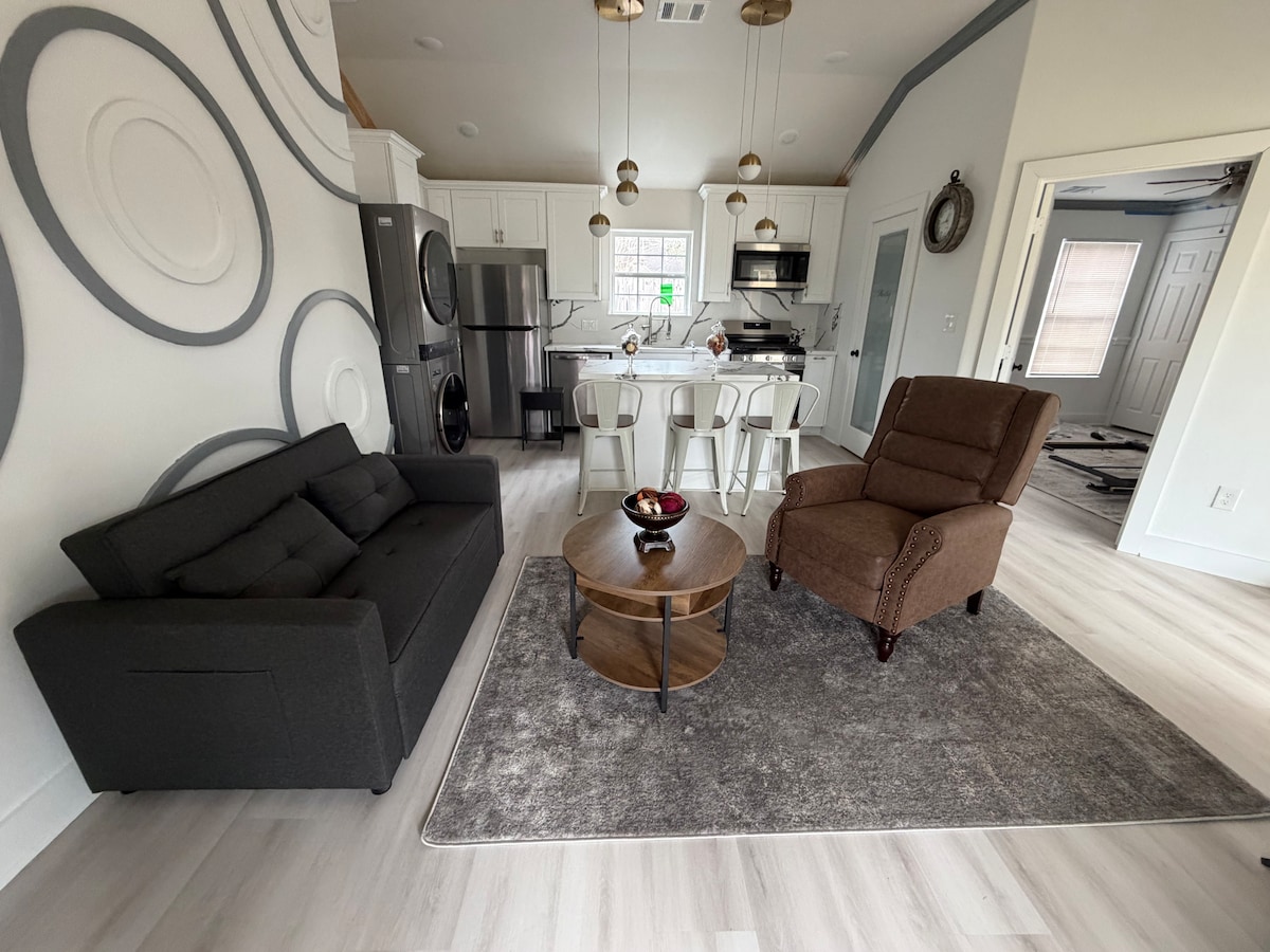 Private, serene & clean guesthouse w/everything you need in a spacious 700 sq ft. • Thoughtfully cleaned by your SuperHost • Fast Wi‑Fi (532 Mbps) • In‑unit washer/dryer • Workspace • Full kitchen w/essentials • Excellent AC/Heat • Cozy couch & recliner • 55" Smart TV with Hulu & Disney+ included • Private bathroom & shower stocked with essentials • Outdoor lighted gardens w/ soothing water features Completely Detached from Main House Modern recessed LED lighting Midway Houston/Galveston