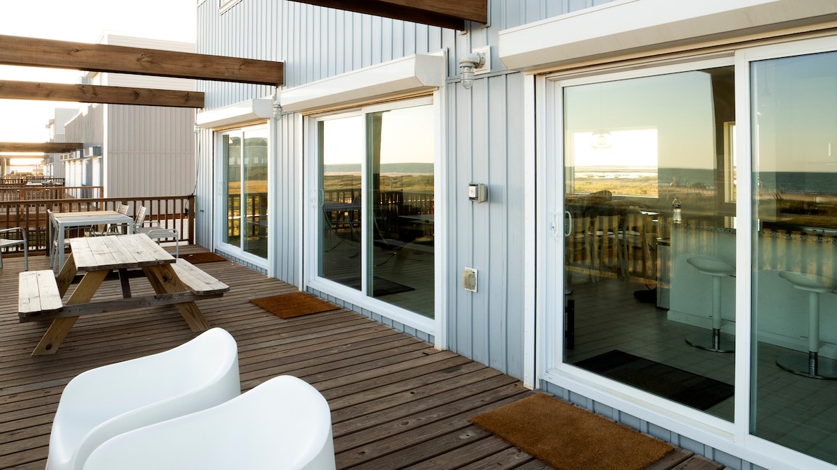 Oceanview beach house with private beach access just steps from the sand. Located on a peaceful cul-de-sac, you can hear the waves from the deck. Features 2 bedrooms (King + Queen), 1 bathroom, fast WiFi, and a fully equipped kitchen. Close to restaurants and attractions but quiet enough for a relaxing getaway. Clean, bright, and thoroughly disinfected—your perfect Surfside retreat!