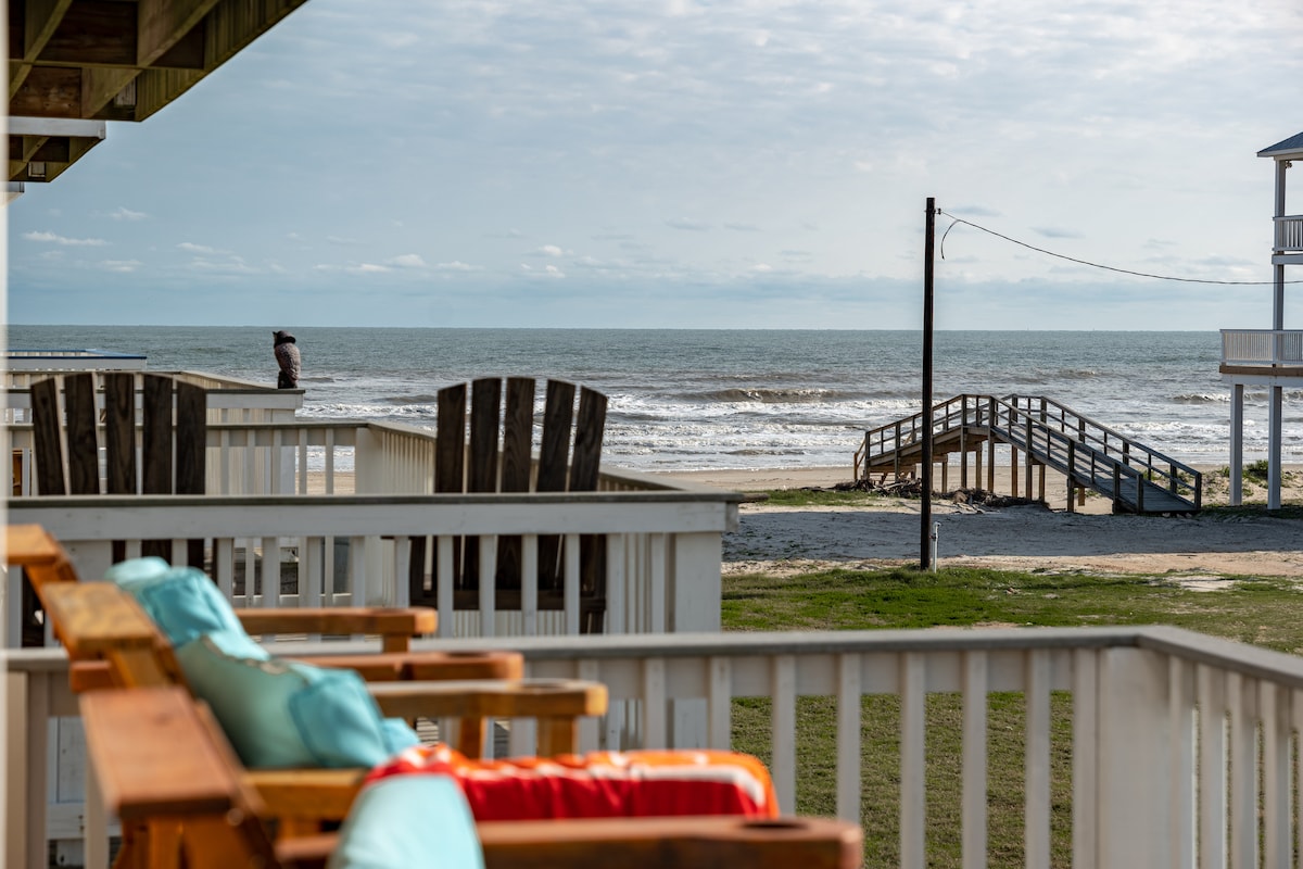 NEW Beachfront Construction! Truly a Unicorn:🦄 LOCATION, LUXURY, and So Nice to Have NEW! Located steps away from the best restaurants and beach in Surfside! Enjoy hammocks and games under the house. Climb the steps to an awesome shaded deck with views from San Luis Pass all the way to the Jetty! More than 180 degree unobstructed views. Bedrooms open to SunDeck and stargazing with fire 🔥 pit YouTube Beachfront Luxe for video $125 cleaning fee and only $75 total for up to 2 pets for whole stay!