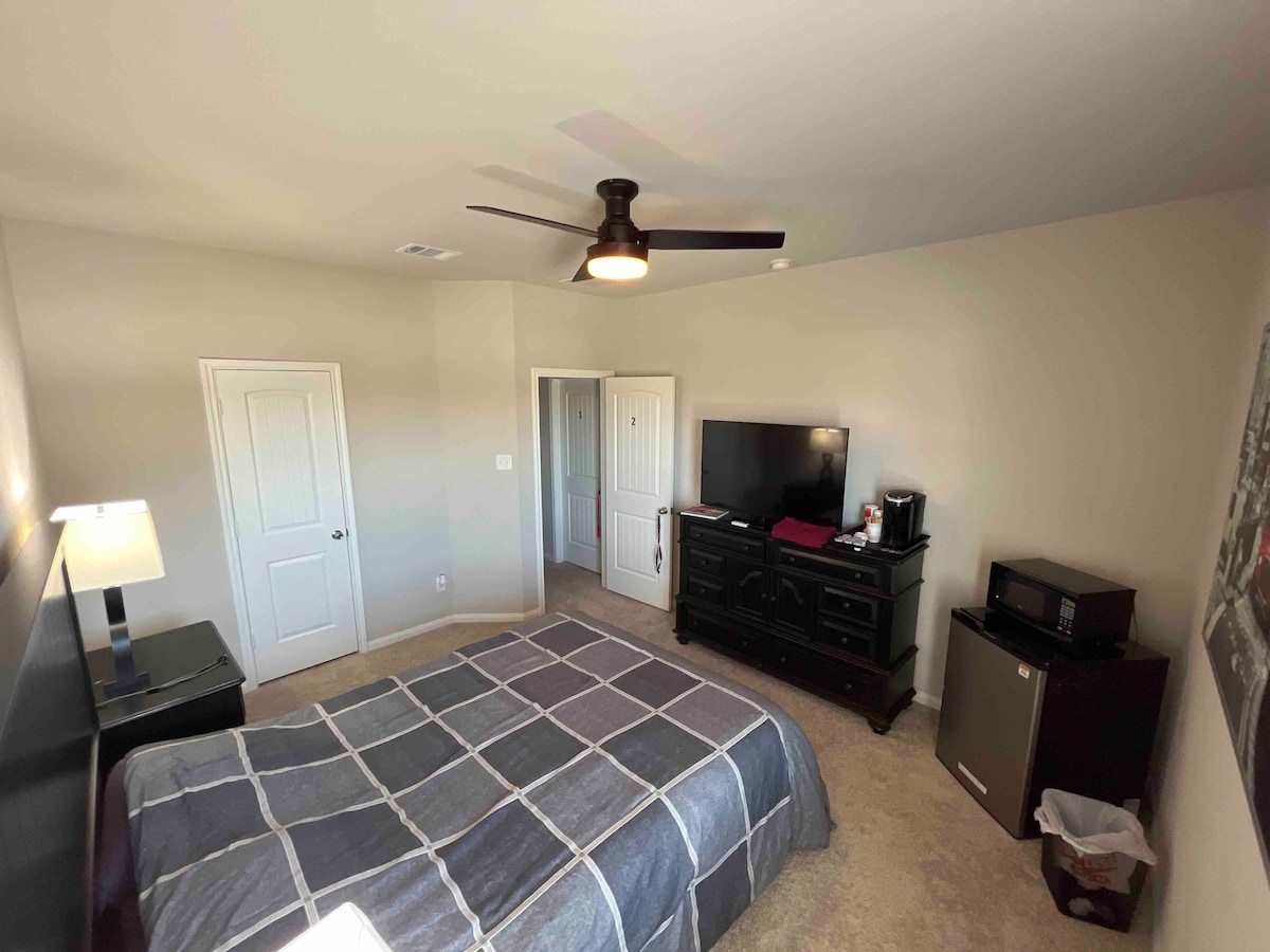 Central location right off Hwy 6, 11 minutes to A&M campus, 6 minutes to Blinn. Walk to Starbucks, Cracker Barrel Restaurant, TruFit Gym, Shopping and more! An extremely comfy king bed in each of the two bedrooms, a private fenced backyard, blazing fast wifi and everything you need for a long term stay (or a quick one). You'll have: ✔ BBQ ✔Outdoor dining ✔coffee ✔Tea ✔65" TV (amazon prime movies, Roku, Fire & Local OTA Live TV) ✔Wifi ✔ Parking ✔COMFY King Beds