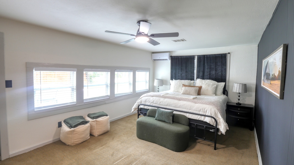 Howdy! Welcome to the Howdy Home in Bryan’s charming historic district—just a 10-min stroll to downtown Bryan. Perfect for Texas A&M visits (only 6 miles away) or Legends Event Center (7 minutes away). Enjoy effortless self check-in/out, a fully stocked kitchen, and private backyard with firepit + cornhole. Unwind with 65” TV & Sonos sound. Sleeps 6: 1 king, 1 queen, 2 twins. Book your relaxing Bryan getaway!