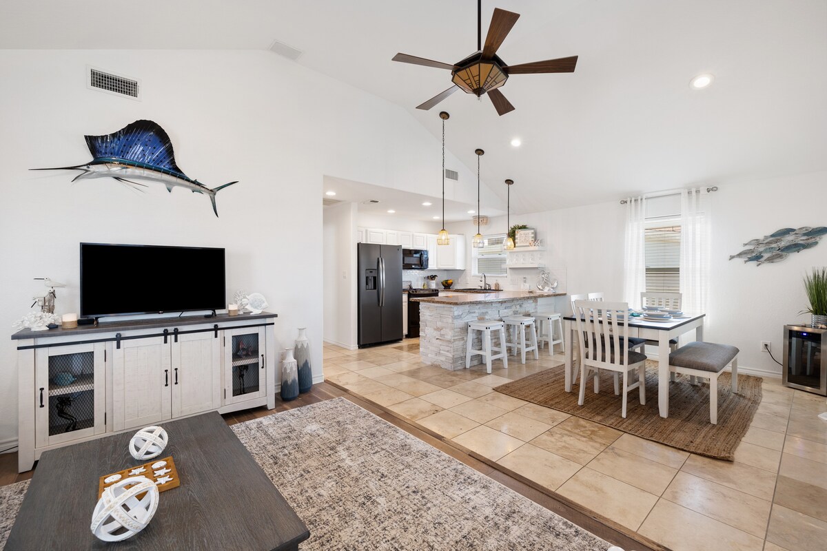 Newly renovated! This spacious 4BR/2.5BA, 2,400 sq ft Bastrop getaway feels like a true escape—while still being just 30 miles from Austin Airport. Relax and have fun with a 14-ft swim spa, pool table, foosball, grill, three 65" TVs, and a charming string-lit deck. Minutes from downtown Bastrop’s shops, dining, and parks. Ideal for families and groups. Swim spa available for an additional $99 for the entire stay.