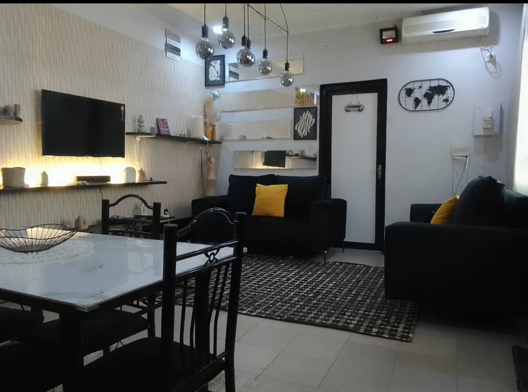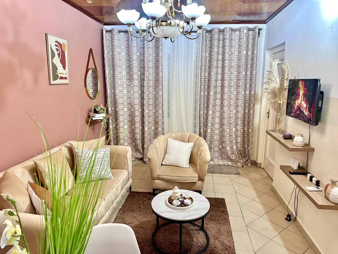 • Stunning apartment fully furnished, within two bedrooms, a living room, a kitchenette area, a bathroom and modern toilets. • It has a large 55” QLED screen with Netflix and WiFi connection. • A day and night guard, a 24/7 cleaning service, secured by an alarm system and an electric fence as well as CCTV cameras. • An electronic generator in the event of a power outage, a water batch, and a private parking.