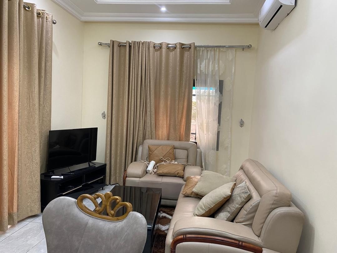 • Stunning apartment fully furnished, within two bedrooms, a living room, a kitchenette area, a bathroom and modern toilets. • It has a large 55” QLED screen with Netflix and WiFi connection. • A day and night guard, a 24/7 cleaning service, secured by an alarm system and an electric fence as well as CCTV cameras. • An electronic generator in the event of a power outage, a water batch, and a private parking.