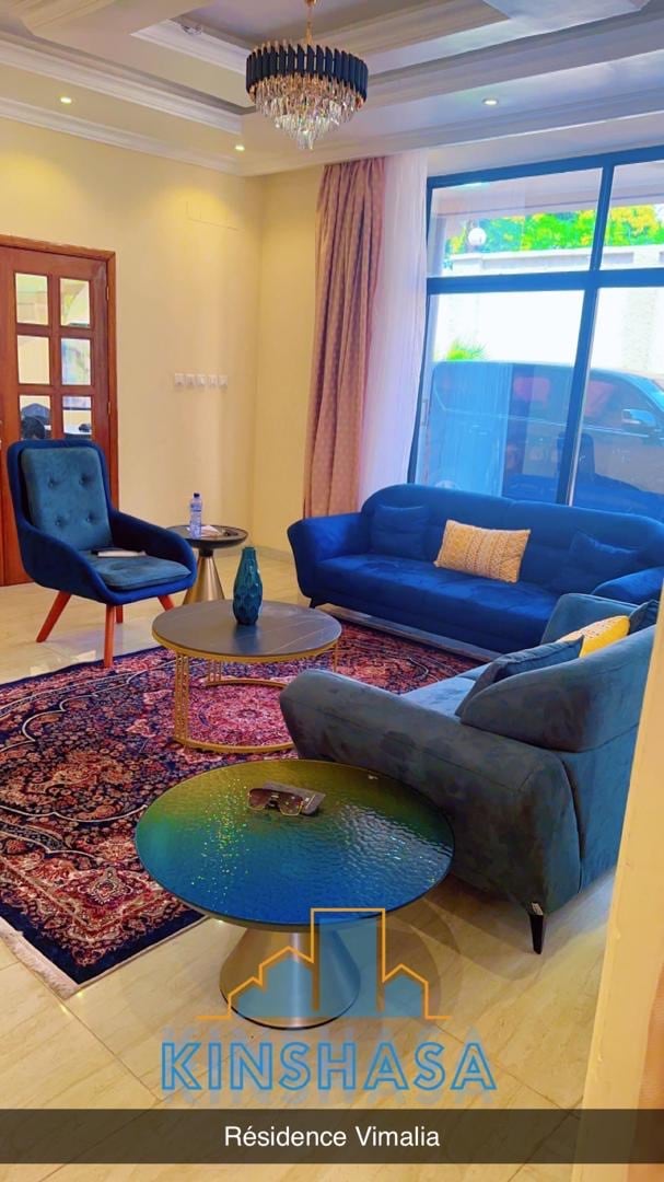 Cet villa élégant parfaite pour les groupes. C'est une maison entière composée de: Au Rez-de-chaussée - 3 chambre + salon + cuisine + terrasse accès au jardin + piscine Au 1er étage - 4chambre + salon + cuisine + grand balcon avec une vue panoramique sur le fleuve Congo. Toute les chambres sont climatisé la maison est équipée d'une connexion Wi-Fi 24/24. La maison est située à 5 minutes du fleuve Congo et aux alentours kinsuka beach et chez les tintins ( restaurant).
