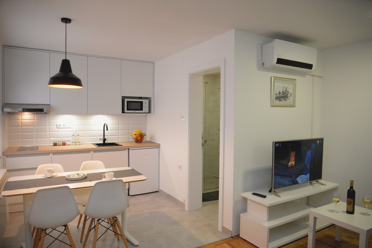 Relax in this brand-new, modernly furnished apartment perfectly located right next to Brčko City Park, and only 1.5 km from the city center. Enjoy the peace and comfort of this apartment, ideal for both short and long stays. The apartment is equipped with everything you might need – from a comfortable bed and a fully equipped kitchen to a TV with Netflix for relaxing evenings. A perfect blend of comfort, location, and style – your new favorite spot in Brčko.