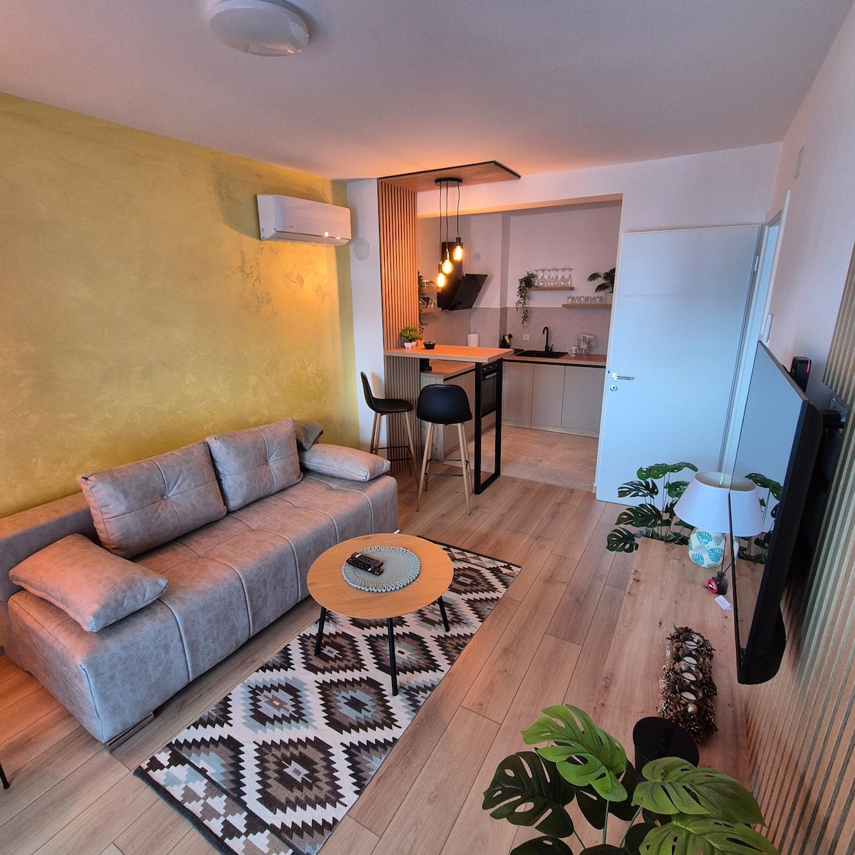 Aura Apartment is a modern and fully equipped apartment located in the very center of Brčko, right on the main boulevard. The apartment is in a building with a lift and offers private parking in front of the building. It features a separate bedroom, a living room with a sofa bed, a fully equipped kitchen, and a modern bathroom. Guests can enjoy air conditioning, fast Wi-Fi, Netflix, and an espresso coffee machine. Suitable for up to 4 guests.