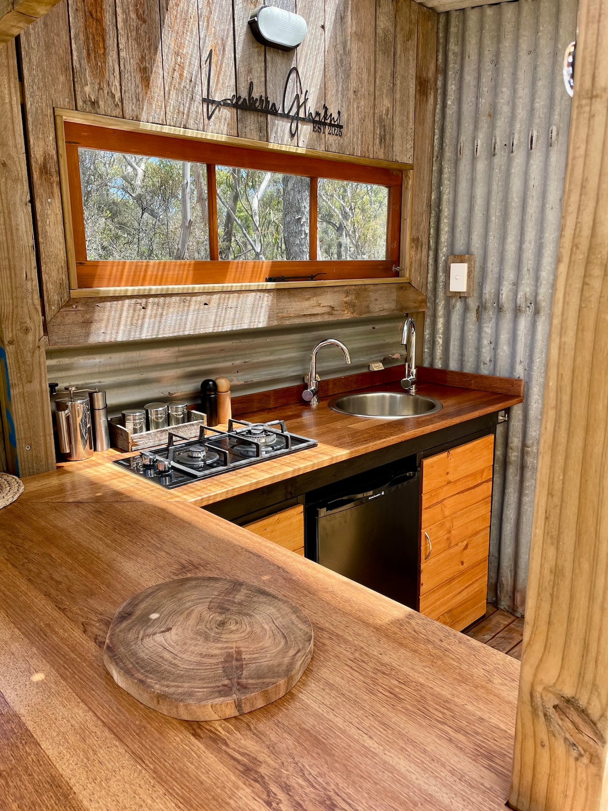 The Bay of Fires Bush Retreat is set amongst a beautiful bush setting, close to the stunning Bay of Fires beaches, and only 2.5km from the Binalong Bay township, and 8km from St Helens. The Bush Retreat has a fully equipped kitchen ready for guests to use at their leisure, or for those who would prefer to take a more relaxed option, we have our Platter Bar and pre-prepared meals made by our in-house chefs, as well as our Bush Retreat Breakfast $25pp that can be pre-booked prior to arrival.