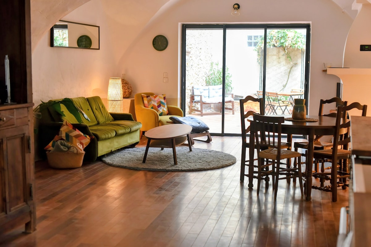 Ce logement unique est en plein centre de la cité médiévale. Vous disposez d’une cour intérieure et sans vis à vis, très rare dans la cité. Venez découvrir la beauté du plateau du Larzac et vous immerger dans ce village fortifié classé; plus beau village de France. Les matériaux sont de qualités, l’escalier sur mesure est construit avec les buis et un arbre provenant directement du plateau du Larzac.