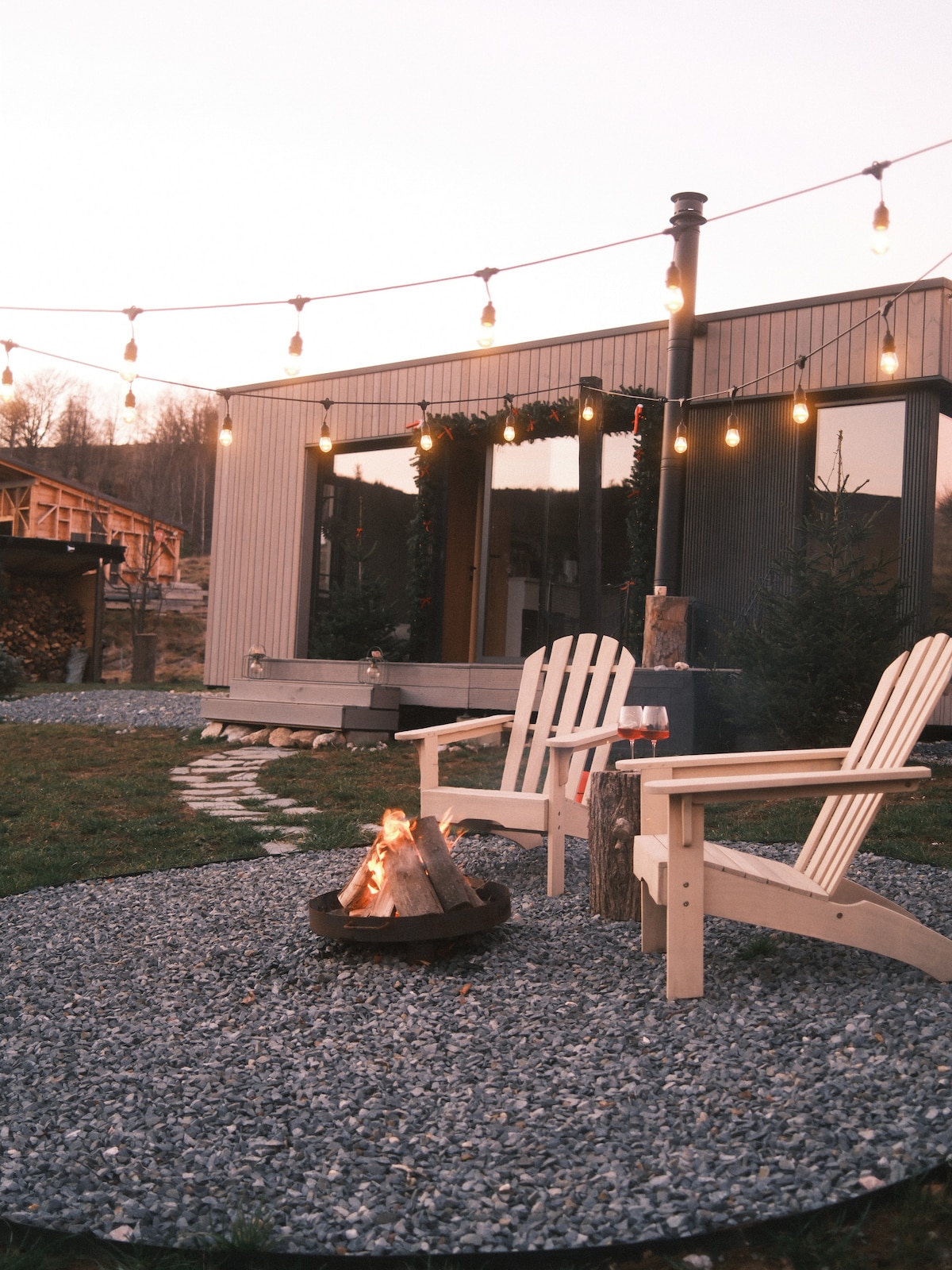 A sanctuary for two, where the mountains meet the sky Wake up to golden light flooding through floor-to-ceiling windows — from the cozy living room to the serene bedroom, each framing a breathtaking view Inside, the crackle of the fireplace warms the heart, while the walk-in rain shower beneath a skylight reveals the stars above. Every detail is crafted for comfort and romance — goose down duvets and pillows, premium linens, and a fully equipped kitchen for slow mornings and candlelit dinners