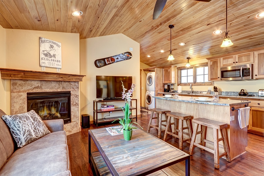 Return from a day on the mountain and store all your gear in a private locker before kicking up your feet in front of the fire in this relaxing condo. The location allows you to spend a quiet evening watching a movie in front of the fire or taking a quick walk downtown to shops and restaurants, or doing a combination of everything!