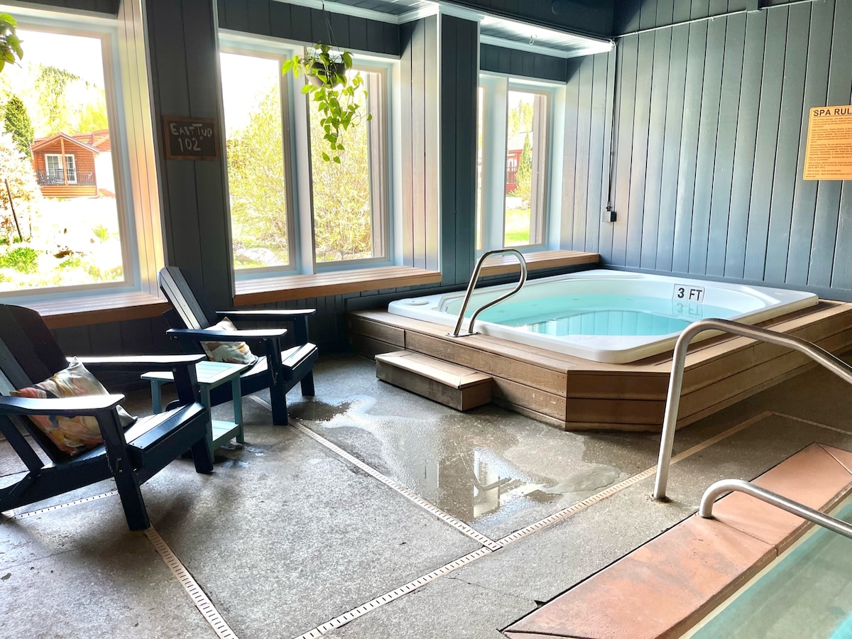This adorable & newly remodeled chalet sleeps 4+. 1 bedroom w queen & tv. Colorado room is a separate living room with sleeper/sofa queen w 2 chairs, fireplace & flatscreen TV. 1 full Bath. Washer/dryer in unit & dishwasher. Full Kitchen & Purified Water System. Rec Center w Indoor Pool & 2 hot tubs & more! Free shuttle to Breck and nearby towns. Beautiful mountain views and hiking/bike trails just steps away. Skiing just minutes away. port-a-crib in unit