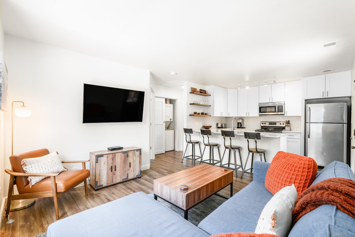 直达滑雪场的1卧室公寓,步行5分钟即可抵达主街