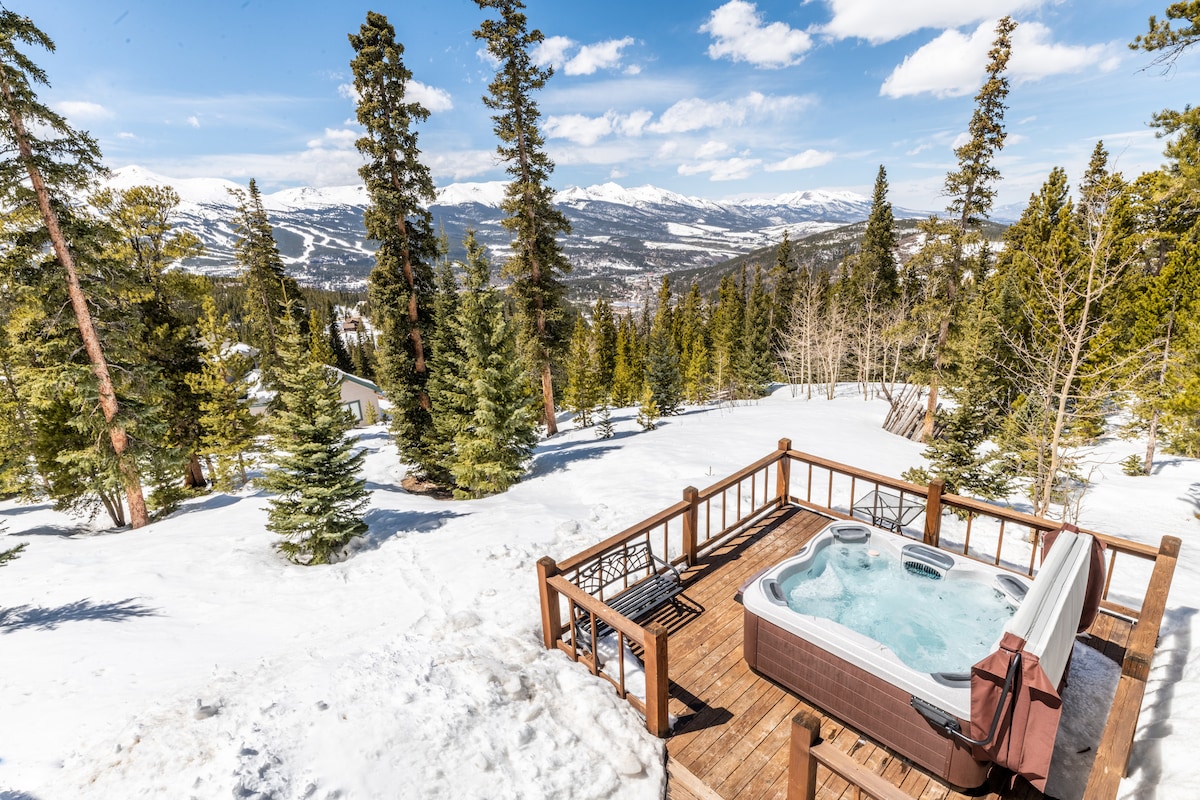 Breck小木屋,带热水浴缸、火坑和山景