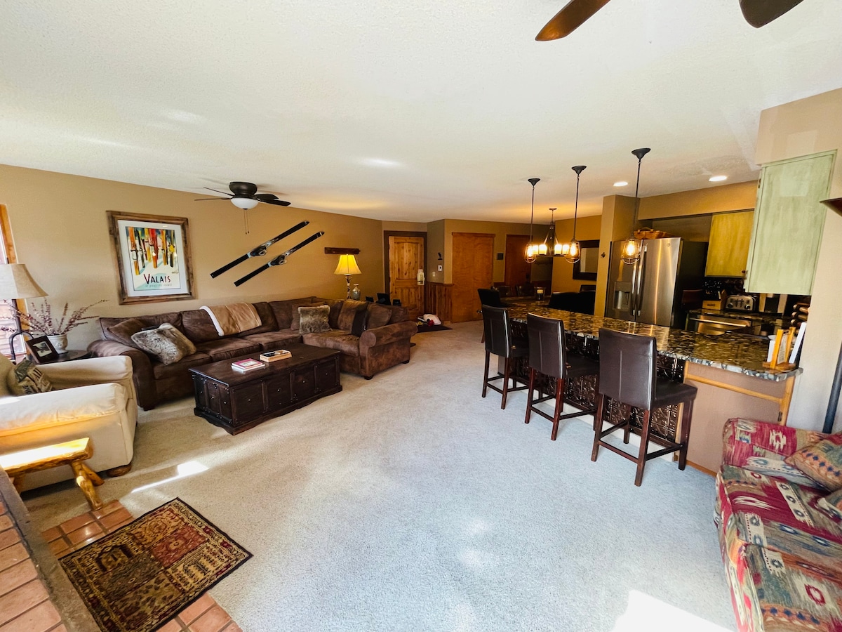This comfy 2BD, 2.5 BA condo is perfectly situated between the Ski Resort & Downtown. You can walk 5 min (<2 blks) to the Snowflake Lift & ski home for a lunch break. At the end of the ski day, take 4 O’Clock Run back for a dip in the hot tub before walking to Breck's historic Main Street in 5 min to explore the many restaurants & shops. Our spacious living area is a great central gathering space, especially great if you're traveling in groups. The Free Bus stops right outside the condo too!