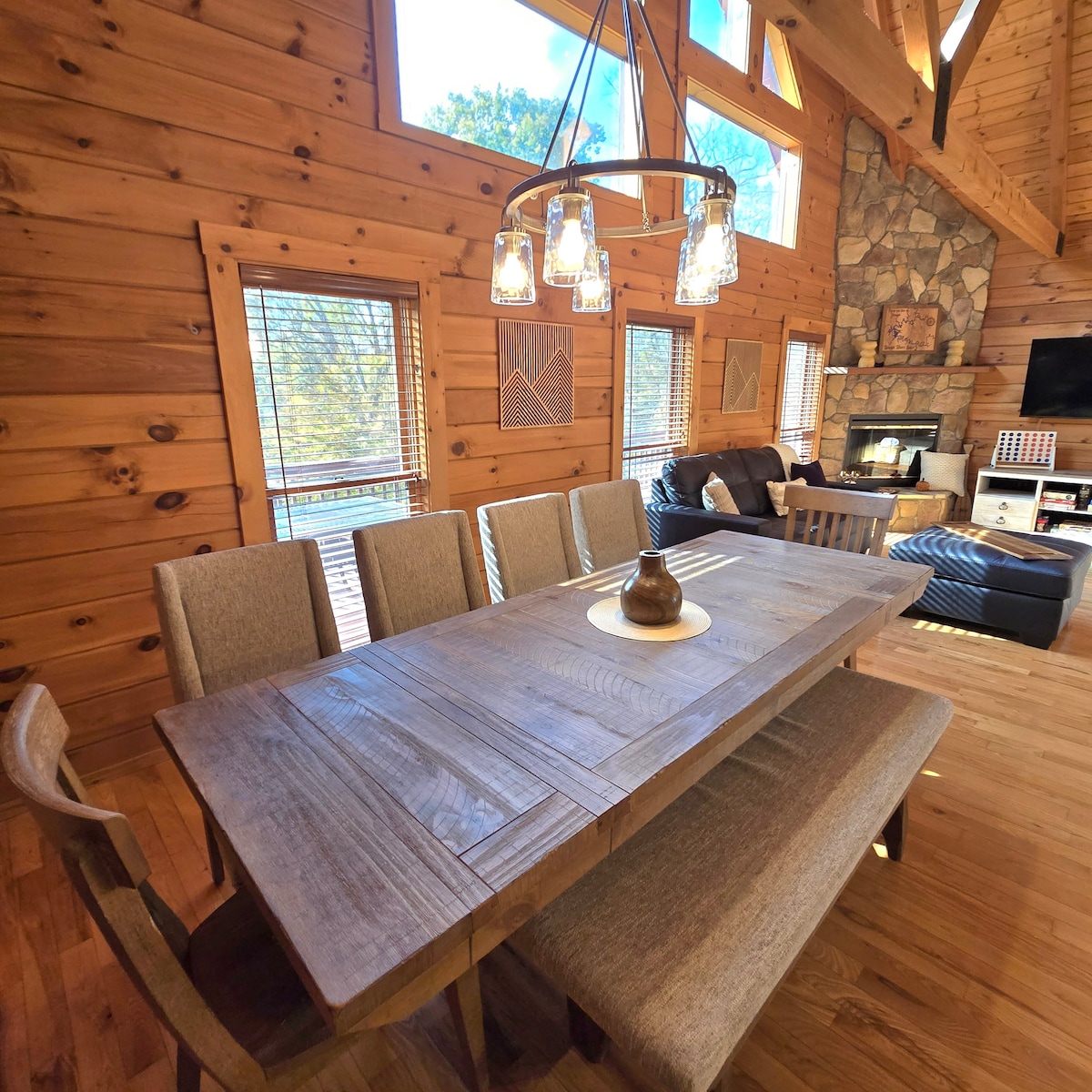 Relax with the whole family at this waterfront Cabin on Rough River Lake! Full loft game room, large bedroom with oversized log bunk beds, huge 66 foot deck, and entertainment area. Located on private lake acreage. Beach your boat on the shoreline and tie to a tree. Great area for fishing! Swingset, bonfire pit, and charcoal grills. Located very close to grocery, bait shop, and restaurants! Free use of Owners Paddle boat. Renters must have previous positive reviews on AirBNB.