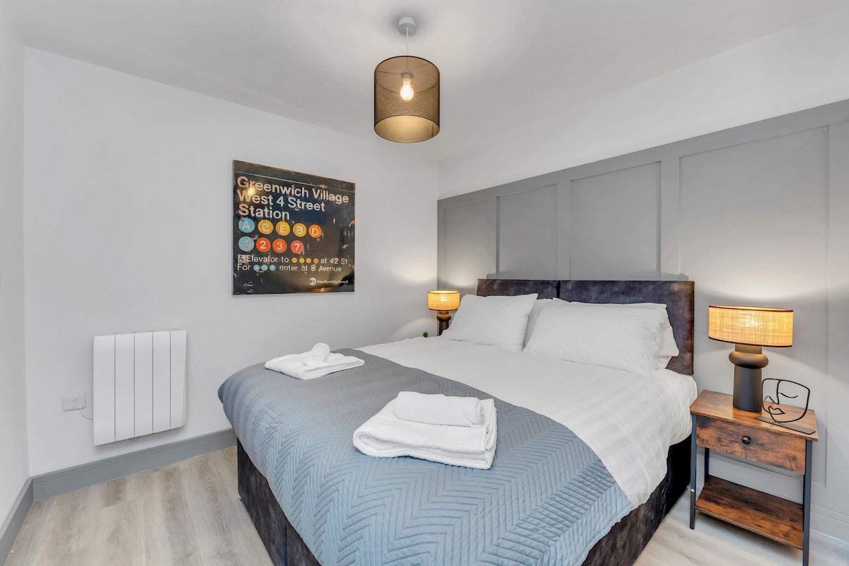 riverside apartment with four-poster king size bed a sofabed in the same room for 2 guests suitable for 1 adult or 2 children just steps away from the quayside of the River Great Ouse, where working vessels, leisure cruisers and seagulls mingle on this most romantic area of the town's riverside. Perfect to stay for the town's entertainment & festivals, this deluxe apartment and overlooks St. George's Guildhall - Britain's oldest working theatre with links to Shakespear