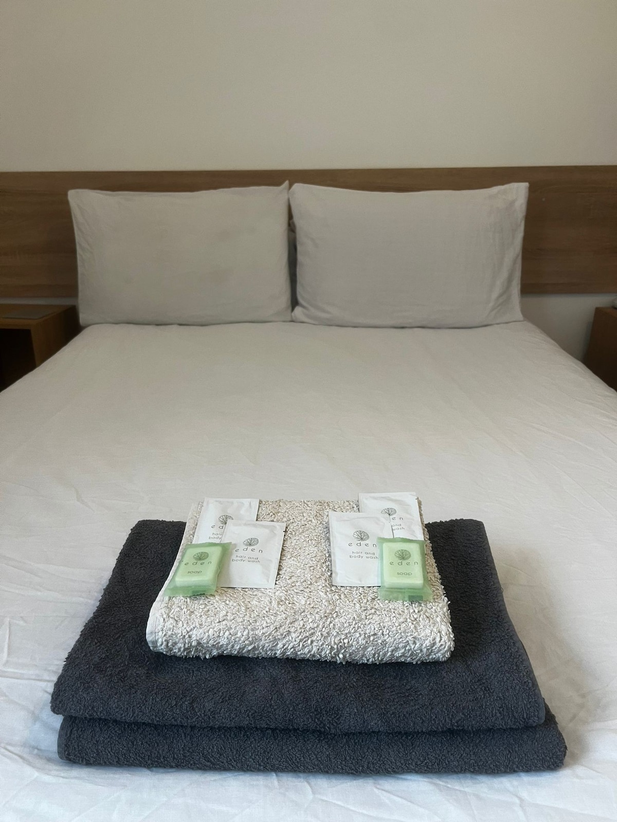 The bedroom features a stylish aesthetic, furnished with a comfortable double bed, bedside tables, and a chest of drawers in black. The flat is finished with blinds and curtains to ensure privacy at dusk. There is private on site parking for your convenience The bathroom is not shared and private for your own use Upon arrival, a set of keys will be provided for your access. We look forward to hosting you!