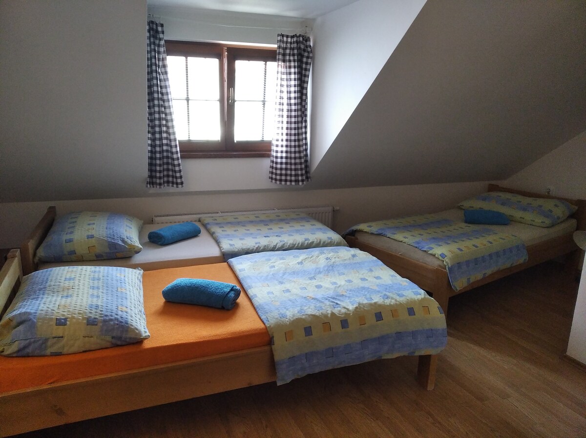 Apartment in Mikulov with capacity for 9–10 guests, located 350 m from the town centre. It is one large apartment with three separate bedrooms (each bedroom has 3 beds). A bathroom (towels, shampoo, soap) and a living room are also available. We offer: Parking available Breakfast: 8 EUR/person (200 CZK) Pets: 10 EUR/day (250 CZK) Free Wi-Fi Wine cellar rental, table tennis Sale of local wines (late harvests from the Pálava hills) Extra bed (9 → 10 guests): 24 EUR/day (600 CZK)