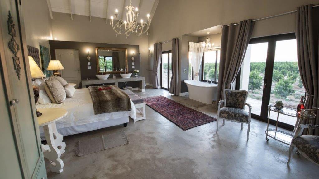TANGO Luxury Self Catering Cottage features a private patio with wood-fired hot tub, braai facilities and stunning views. The luxurious and spacious main room has an open space shower and bath tub overlooking the citrus orchard. The cottage comprises of a fully equipped open-plan kitchen and living room with fireplace. The 2nd bedroom has 2 single beds and en-suite bathroom. Bedding and towels provided. De Wilge has a 4-star grading from the Tourism Grading Council of SA. NO LOADSHEDDING