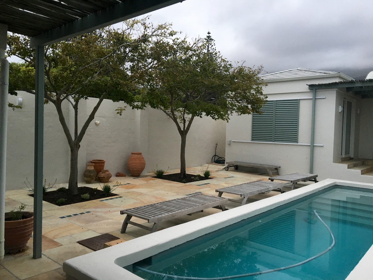 Superb non-smoking garden cottage at the back of the main house. It sleeps 4 guests in two very luxurious en-suite double bedrooms (Air conditioned) with spacious TV- lounge and small kitchenette. (Well equipped). Expect good quality linen and fluffy towels and unexpected little luxuries. A sparkling pool, free parking and Fibre Wi-Fi on the premises. Guests can enjoy the garden and pool at leisure. It is completely separate and private as only one other person resides in the main house.