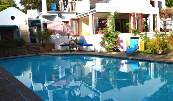 Lovely garden suite set in peaceful garden, is elegantly decorated with a bath, en-suite bathroom and shower. The room is fully equipped with a Generator, TV, Wi-Fi, microwave, cutlery and crockery, tea & Nespresso coffee facilities, air-conditioning, heating, hairdryer, etc. The room leads onto its own private garden, where you enjoy the magnificent view of the Franschhoek mountains. Enjoy a swim in the swimming pool or a game of tennis or walks in the vineyards and rose garden.