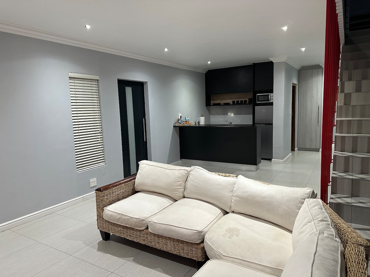 The Aloe Suite is nestled in the leafy neighbourhood of Courtrai in Southern Paarl. The double story space includes a kitchen, lounge and dining area on the lower level.Upstairs you’ll find a bedroom, en suite bathroom and a balcony overlooking the pool. Guests have a private entrance,patio and barbeque area and shared use of the pool . There is parking on the premises, TV (with netflix ) and Wi-Fi. Laundry can be arranged at a fee. Bed for a minor /child can be arranged on request too