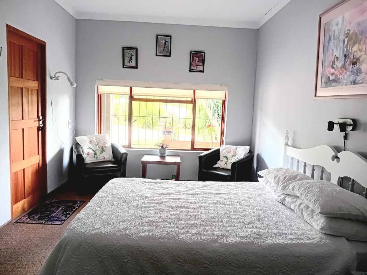Comfortable double room with hand painted furniture and extra length queen size bed with cotton sheets. Private bathroom with shower & free toiletries. Seating area with table & chairs. Crockery, cutlery, bar fridge & coffee station. Fan for summer & gas heater & electric blanket for Karoo winter nights. Safe, off the street parking. Private entrance & private patio to sit back & relax with a cup of coffee or a glass of wine. Barbeque facilities available.