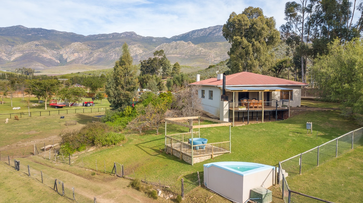 Xairu is the San word meaning “paradise”. Surrounded by nature and a 10-minute drive from Montagu, Xairu certainly lives up to its name. The house is situated in a private 40ha Eco-Reserve of only five houses. If it’s tranquillity you are seeking, then this is the place. With breath-taking lake and mountain views and stunning sunrises from the porch, this beautiful French-style thatch home offers comfortable farm style living. Located in the centre of local peach and apricot farmlands.