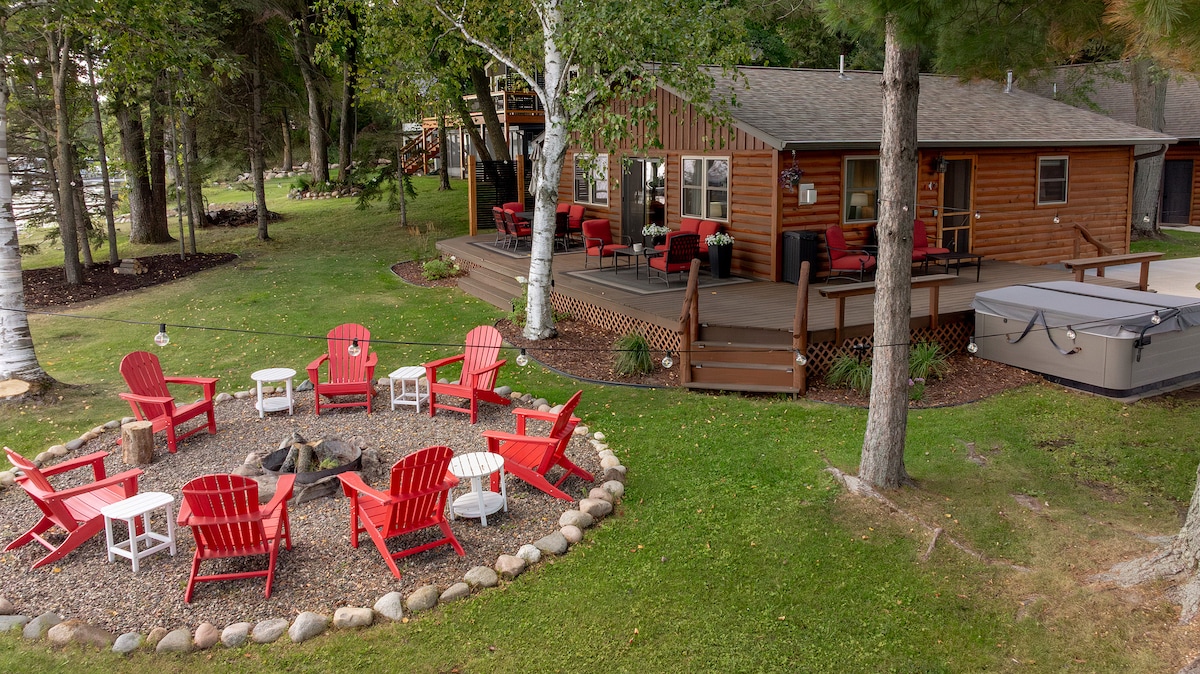 Cozy Lake Cabin at the end of a private road - 2 Lakeside Rooms with King Beds - Year round 4 person hot tub - Heated Floors in winter (not in the porch) - Private Beach & Dock - Lakeside Firepit for Evening Bonfires & Smores - Stunning Sunsets Over the Lake - Patio with Grill & Furniture in summer months - Instacart delivers! - Perfect for a peaceful getaway or exploring nearby attractions in Crosby/Crosslake/Nisswa as we are centrally located to all
