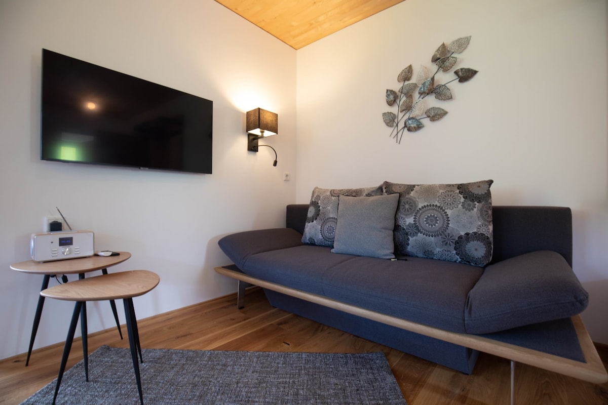 Ferienwohnung mit Loftcharakter im Grünen, zur Selbstverpflegung auf 1.000m Seehöhe, ca. 6 Km vom Bodensee entfernt. Wohn-Essküche mit Geschirrspüler, Induktions-und Gaskochfeld, kostenloses WLAN, Waschmaschine, Wäschetrockner, 46m² große Terrasse, Holzkohlegrill und Hochbeet mit frischen Kräutern. 2 Schlafzimmer mit einem Doppelbett, sowie einer Liegewiese mit 4 Schlafplätzen, 1 Wandschrank, 1 Wohnzimmer mit einem Sofa sowie Stühle, großer Esstisch, 1 großes Bad sowie 1 zusätzliches WC.