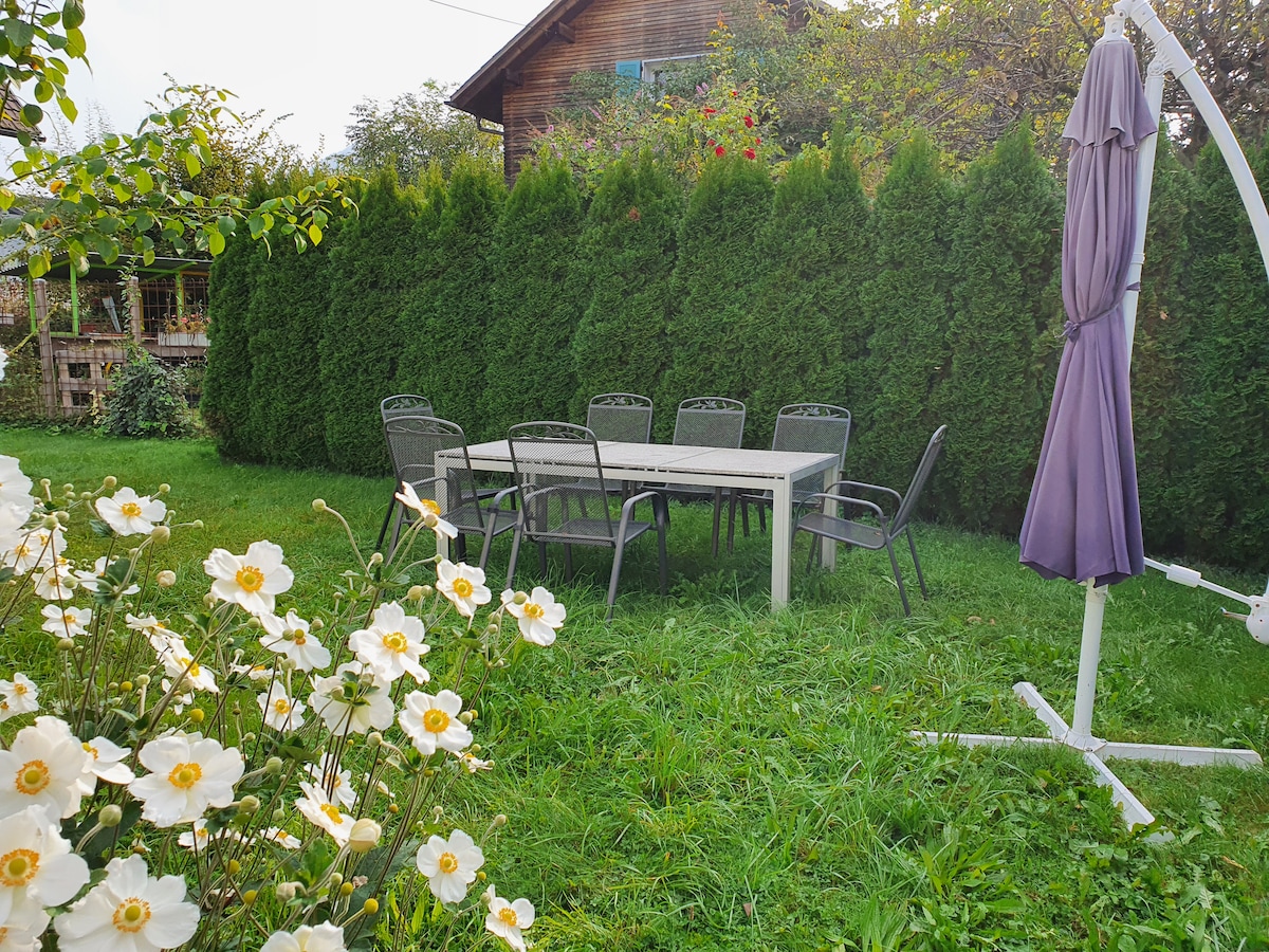 Die ruhige 50qm Garten-Wohnung mit eigenem Carport für Ihr Auto, lockt dank kleinem privaten Garten nach Draußen. Die voll möblierte Wohnung bietet Platz für bis zu drei Erwachsene oder zwei Erwachsene mit zwei Kindern, einem Hund oder aber auch einer Katze :-) Ich bin sehr tierlieb, freue mich aber, wenn die Wohnung wieder sauber hinterlassen wird. Sie ist voll ausgestattet und bestückt, packen Sie Ihre Kleidung und eine Zahnbürste und gönnen Sie sich eine Auszeit in Dornbirn.