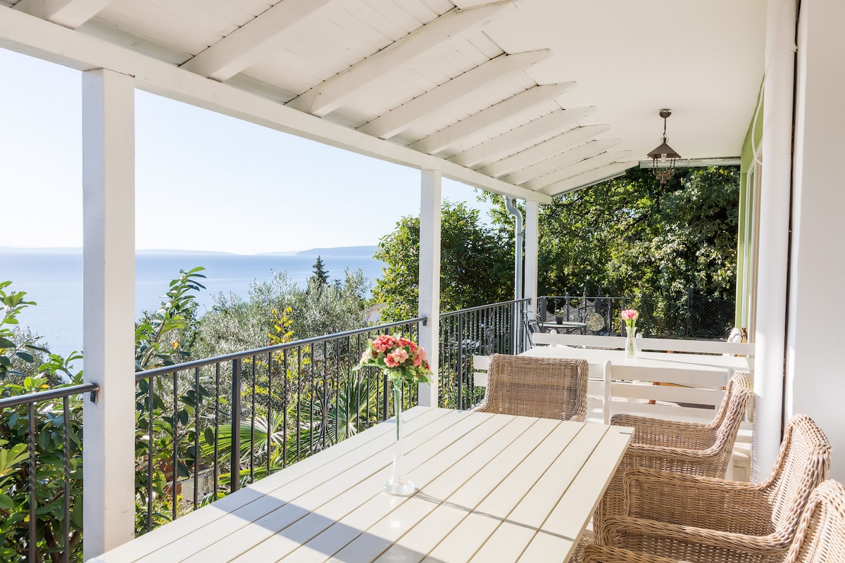 Freshly renovated apartment in 117 years old Austro-Hungarian villa, a few meters away from the sea, right on top of beautiful yacht marina and promenade of Franz Jozef I, few minutes of walking distance from historical center of old aristocracy summer resort town of Opatija. From 14 square meters balcony you can enjoy in sunny view of Kvarner bay, surrounding historical villas, green garden, or have a relaxing evening with your favorite beverage while town lights reflecting from Adriatic sea.