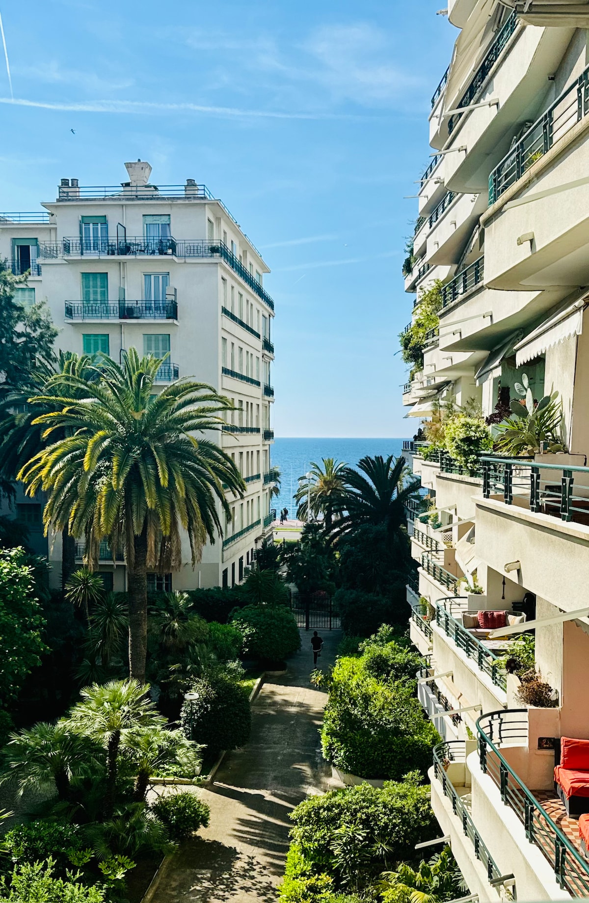 Das außergewöhnliche Apartment befindet sich im 4. Stock eines Mehrfamilienhauses an der Promenade des Anglais, d.h. nur wenige Schritte vom Strand entfernt. Die Wohnung verfügt über ein großes Wohn-/Esszimmer mit einer offenen Küche sowie 2 Schlafzimmer, 2 Bäder und eine große Terrasse. Die Einrichtung ist stilvoll-lässig. Der großzügige Balkon ist auf das Meer ausgerichtet und hat (fast) den ganzen Tag Sonne. Zum Stadtzentrum sind es 15 Minuten zu Fuß oder 5 Minuten mit der Straßenbahn.
