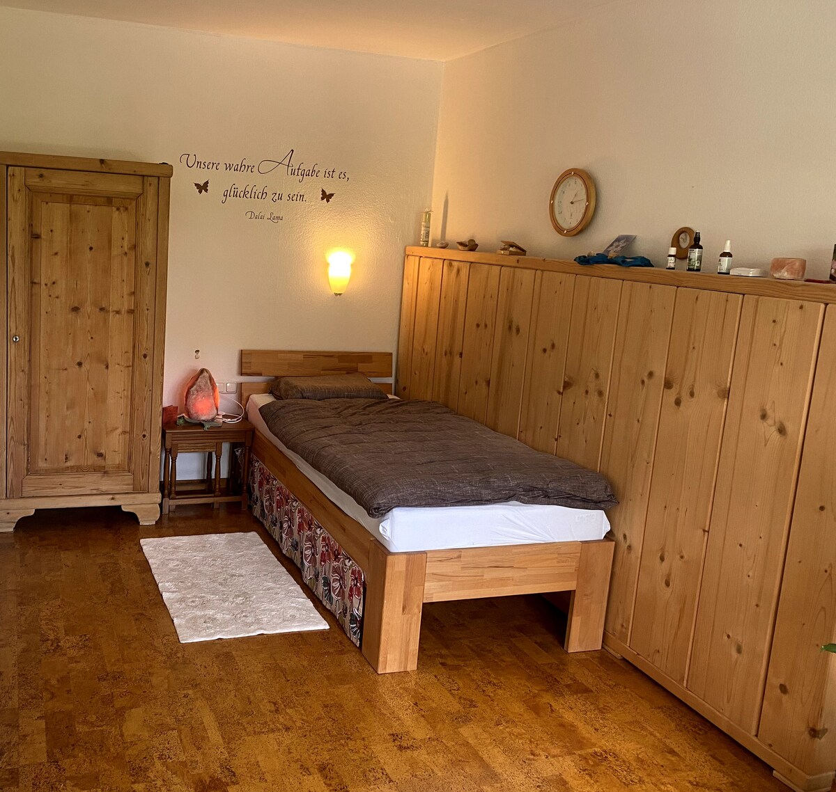 Mein Haus liegt am Waldrand in ruhiger Lage. Zur Zeit (Corona) sind nur Buchungen für Einzelpersonen oder kleine Reisegruppen möglich. Die verfügbaren Zimmer in der ersten Etage sind erreichbar über eine Steintreppe. Auf Anfrage kann ich ein Kinderbett einrichten. Auf meinem Grundstück gibt es einen Autoparkplatz, in einer Garage (mit Steckdosen) können Fahrräder und Motorräder untergestellt werden. Die nähere Umgebung lädt zu Entdeckungen in Wald und Flur ein.