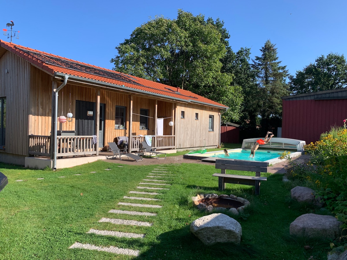 Das Haus ist ein Nebengebäude und liegt auf meiner kleinen Hofstelle. Du hast das Haus ganz für dich alleine. Von der überdachten Wintergarten-Terrasse hat man einen herrlichen Ausblick auf Felder, Wiesen und Wald. Es ist ein Ort zum Abschalten und Relaxen.