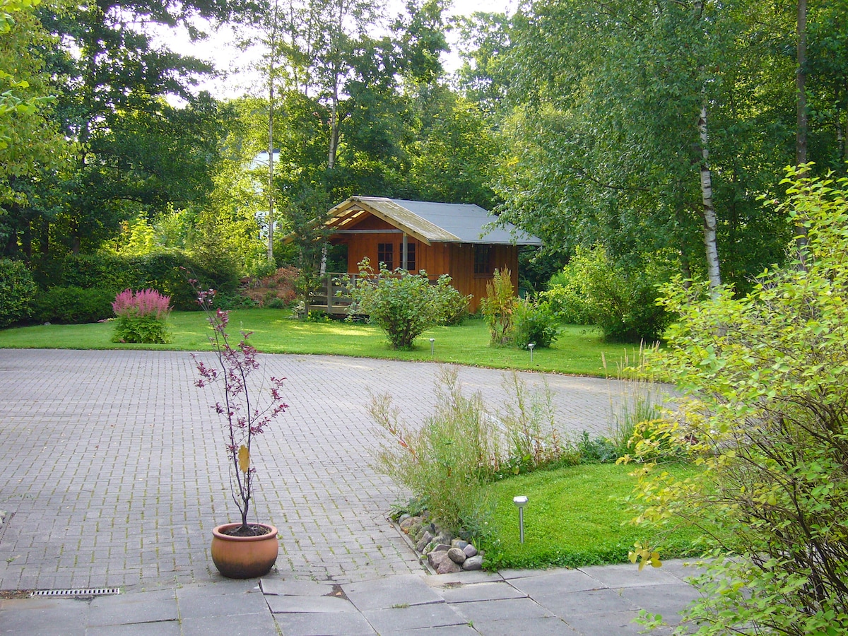 Kleines, idyllisch gelegenes Fachwerkhäuschen im Grünen auf parkähnlichem Grundstück. Gemütlicher Wohnraum mit offener Küche und kleinem separatem Bad mit Dusche und WC im EG. Schlafbereich (großes Doppelbett) im OG mit Schrägen über kleine Treppe zu erreichen. Ca. 2 Km von der Ortsmitte und nur 200 m um im Grünen oder Wald lange Spaziergänge zu unternehmen. Bus- und Bahnhaltestelle in ca. 800 m Entfernung zum Besuch von Bremen (20 Min.) oder Worpswede (20 Min.)