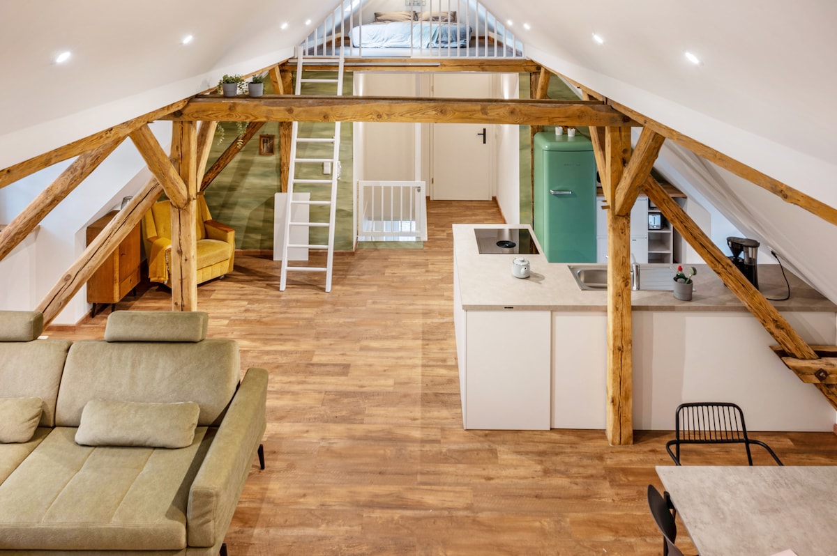 Unsere "Walachei" ist ein besonderes Fachwerk unter Reet auf einem idyllischen Anwesen mit Garten und kleinem See. Das Haus wurde 2021 kernsaniert und eignet sich ideal für eine Auszeit mit Freunden oder Familie. Der großzügige Wohnbereich bietet ausreichend Platz und Freiraum. Viele Extras wie Sauna, Whirlpoolwanne und ein Kaminofen laden zum Entspannen ein. Ein zusätzliches Highlight ist der sichtgeschützte Garten. Von der Terrasse oder dem Sonnendeck hat man einen direkten Blick aufs Wasser.