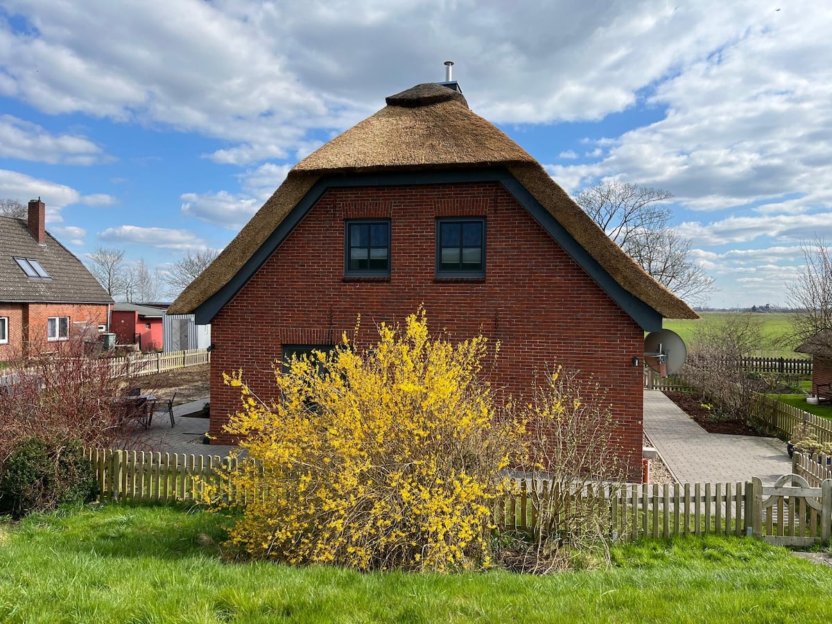 Lehne dich zurück und entspanne in diesem gemütlichen, stilvollen und gehoben ausgestatteten Reetdachhaus am Rande von Worpswede.