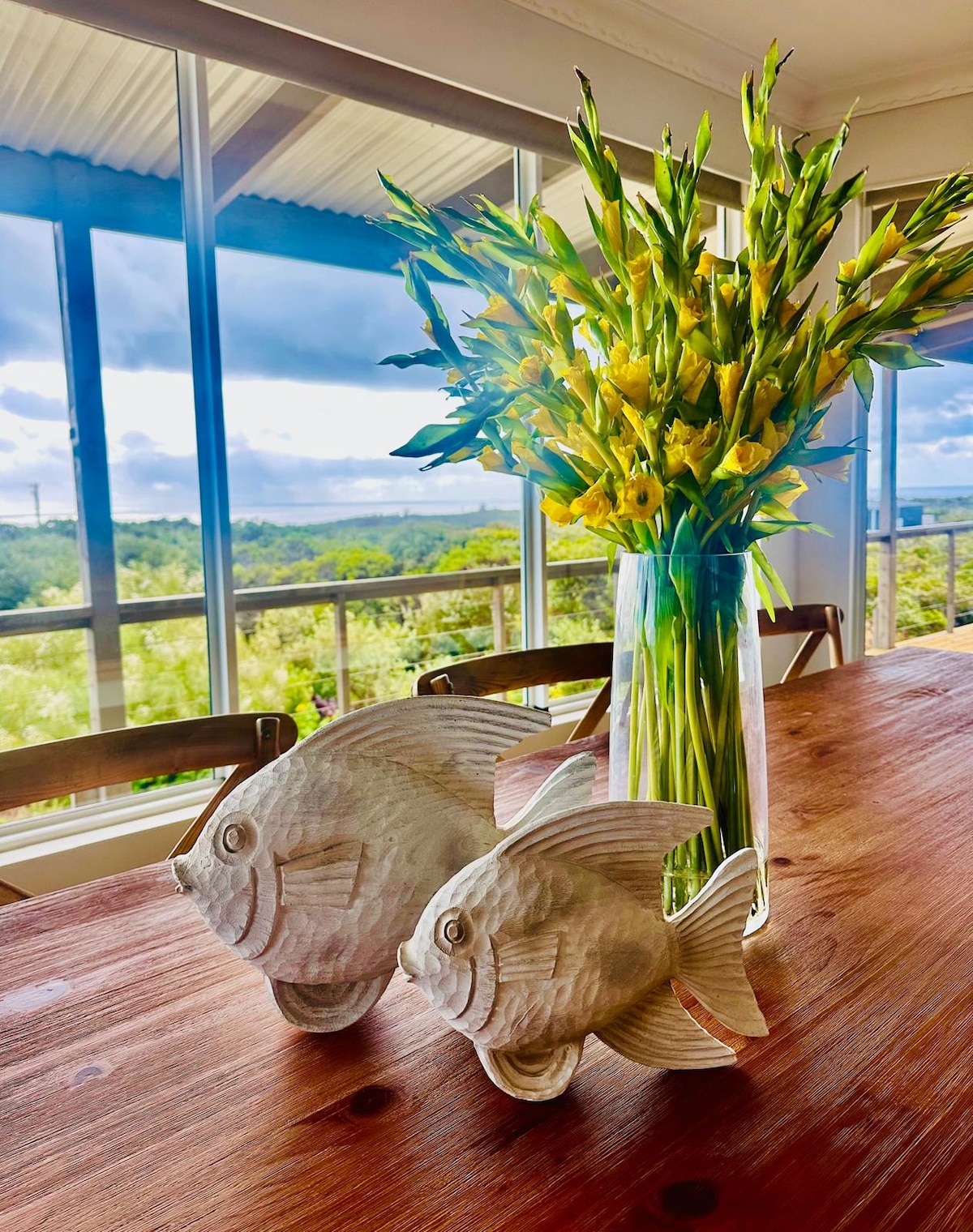 Breath taking views of the beach, the lagoon, the reef, the ocean wildlife, the headland, the open ocean, and spectacular sunrises from every space in this beautiful little house, make this a one of a kind, hard to find experience. Little Blue has been built using sustainability principles; it is completely off-grid, operates from rain water tanks, has a composting toilet and is fitted out with non toxic, natural paints and floor coverings.Doors and windows are all double glazed.