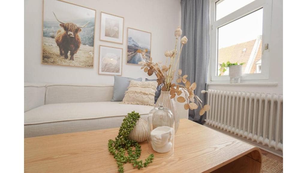 Stylisches Apartment im skandinavischen Look im Herzen Bremerhavens. Balkon, voll ausgestattete Küche, WLAN, Smart-TV, Waschmaschine. Perfekt für 2–4 Gäste. Top Lage am Marktplatz, 500 m zum Hbf, fußläufig zu Hafen, Zoo, Klimahaus & Strand. Familienfreundlich mit Hochstuhl & Reisebett. Privater Parkplatz. Ideal für Ausflüge nach Helgoland, Sylt, Bremen & Umgebung.